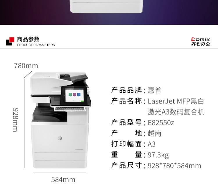 商品名称: 惠普 E82550z A3 黑白中速数码复合机(单位:台)