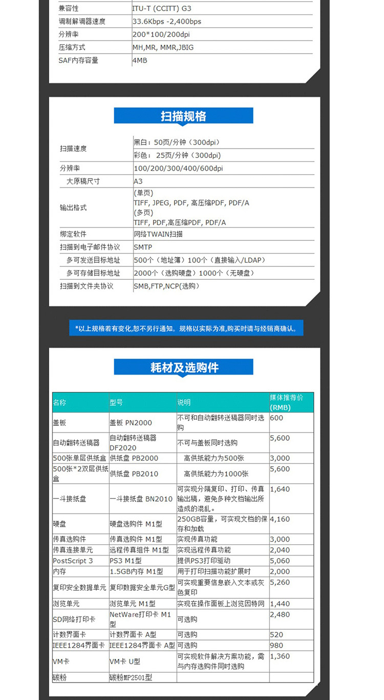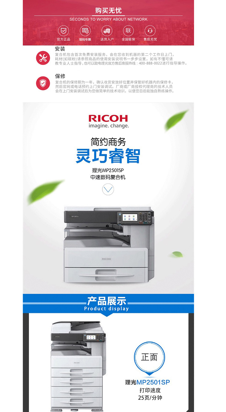 • 商品名称:理光MP2501SP黑白数码复合机含输稿器(台)