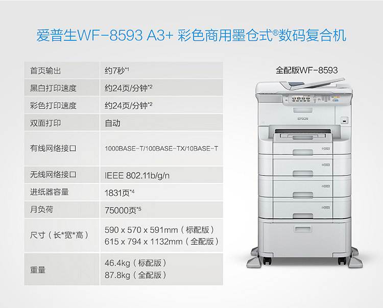 • 商品名称:爱普生WF-8593彩色激光一体机(单位:台)