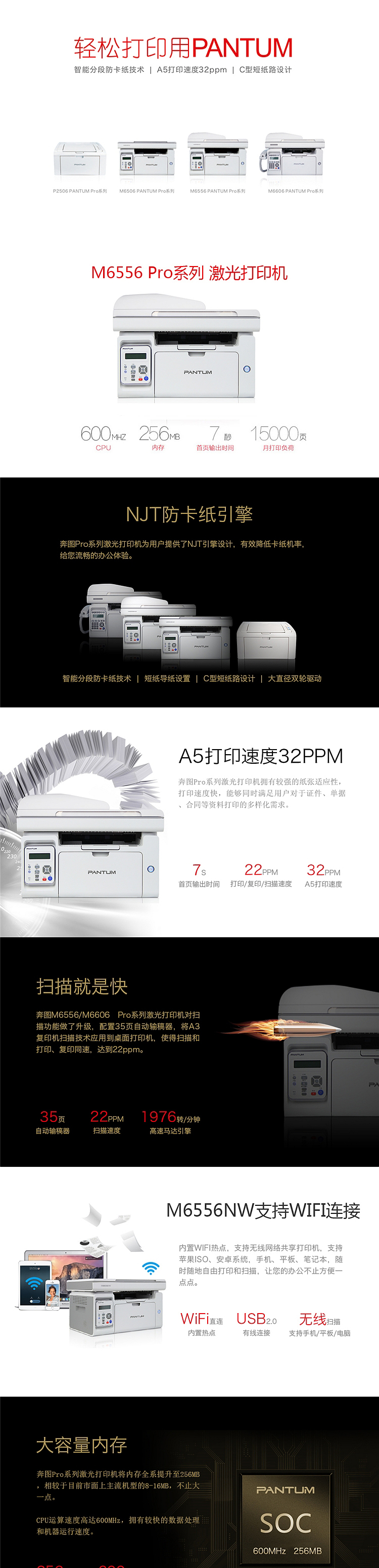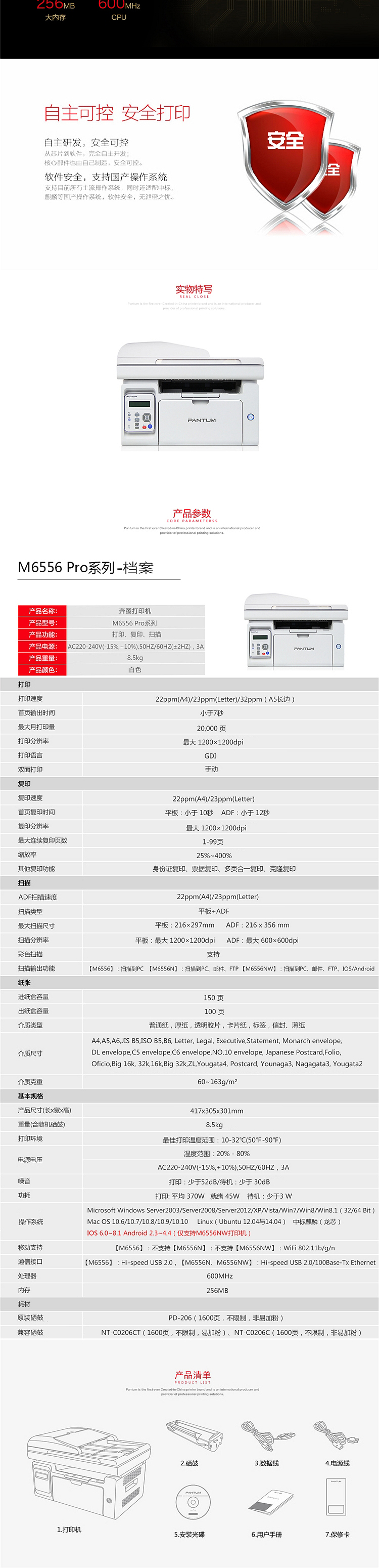 商品名称: 奔图 M6556NW 黑白激光一体机 1200x1200dpi (单位:台) 黑色