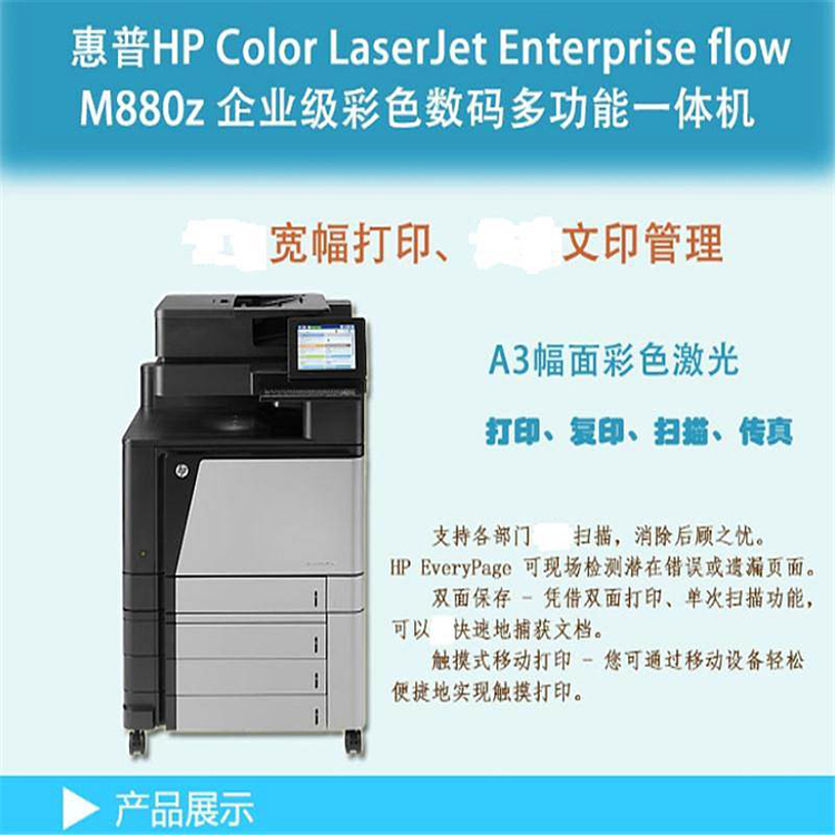 办公设备  > 打印/复印设备  > 激光打印机  >  适盒/A4BOX  >  惠普 M880Z+CZ999A 彩色激光多功能一体机(含装订器) (单位:台)