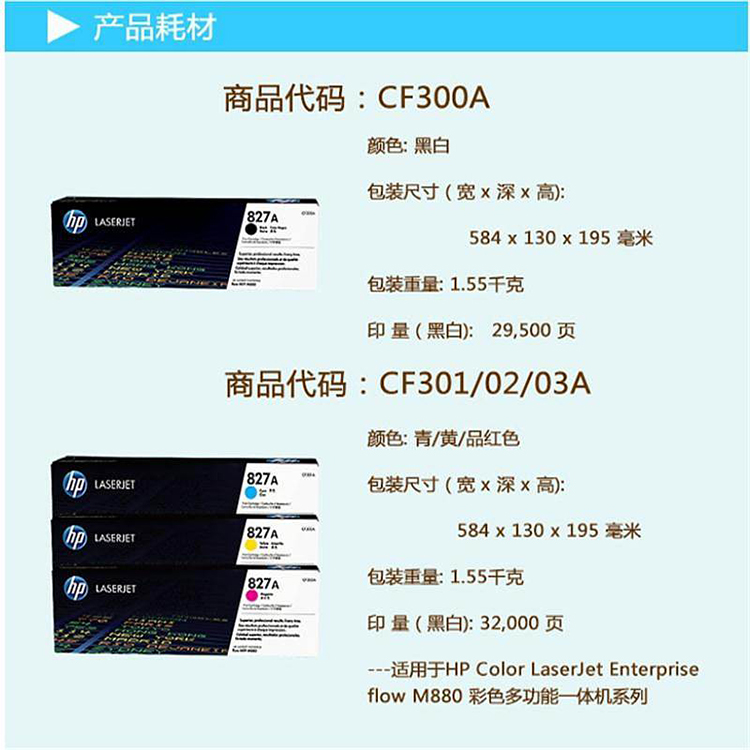 • 商品名称:惠普 M880Z+CZ999A 彩色激光多功能一体机(含装订器) (单位:台)