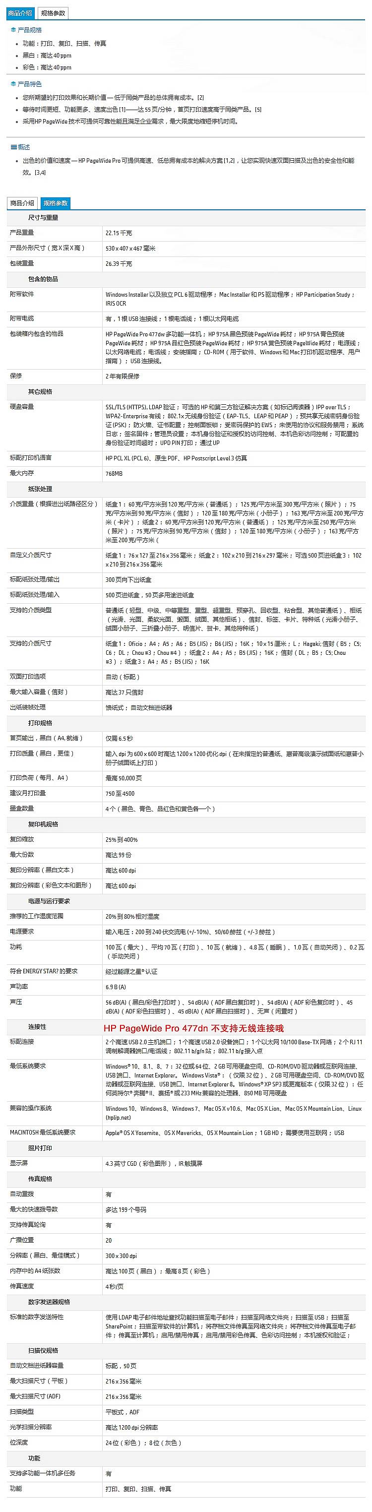 • 商品名称:惠普 PageWide Pro477dn 彩色多功能一体机 2400×1200dpi (单位:台)