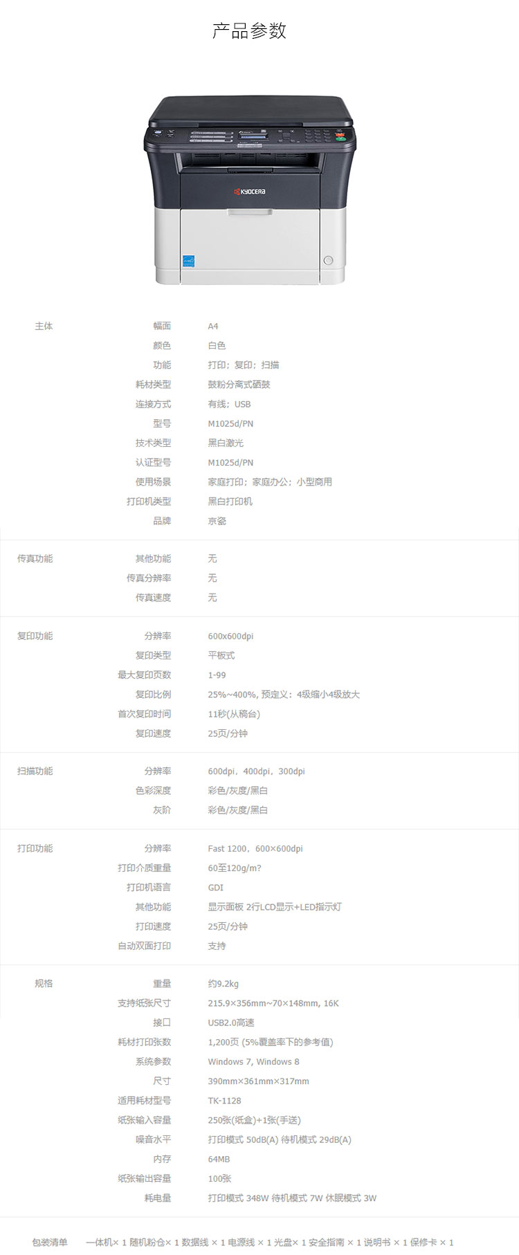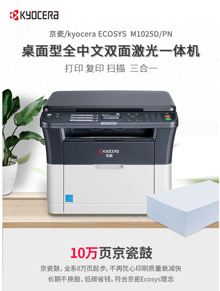 • 商品名称:京瓷 M1025d/pn黑白激光一体机(三合一)(单位:台)