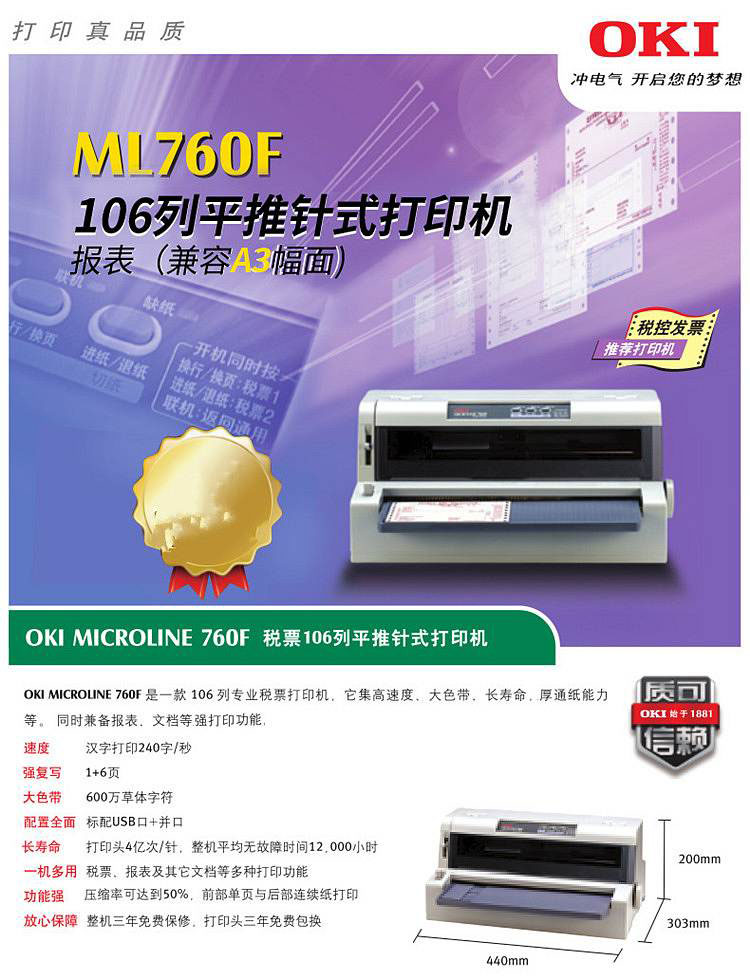• 商品名称:OKI 760F 列平推针式打印机 106列(单位:台)