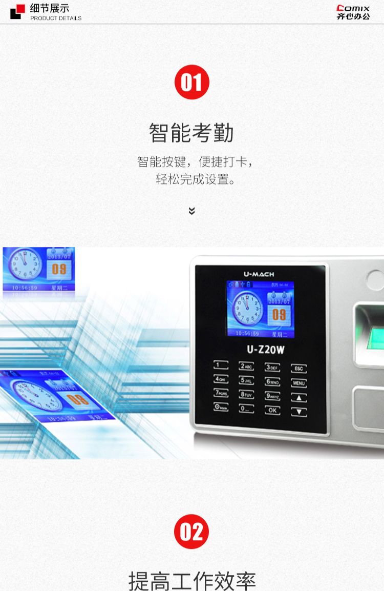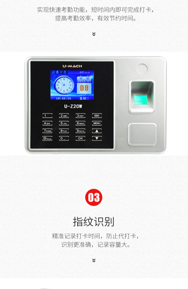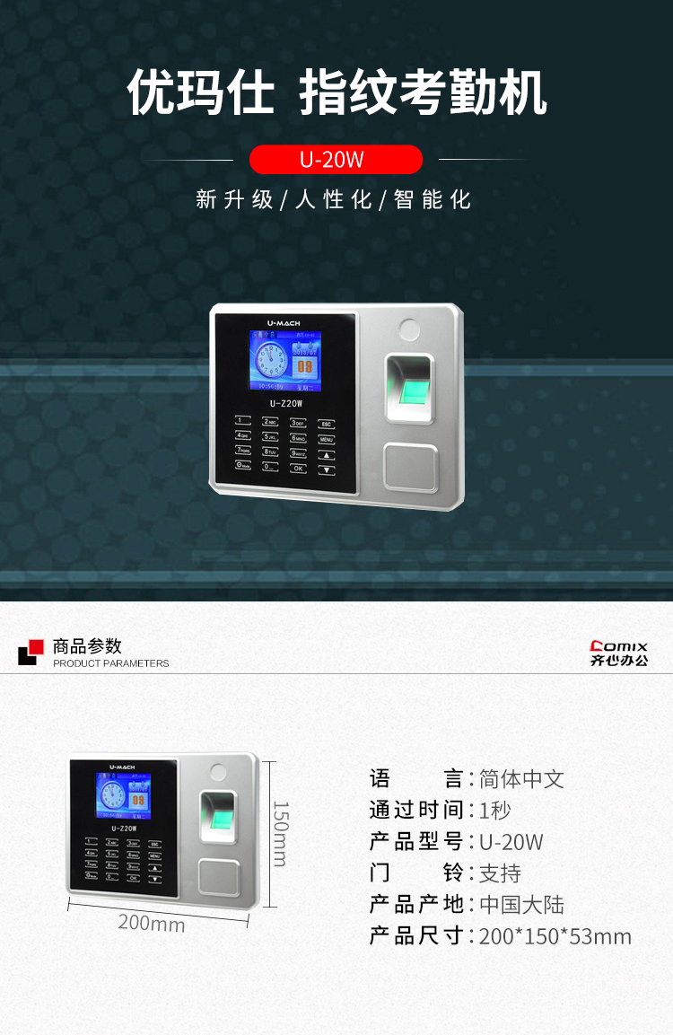 • 商品名称:优玛仕 U-20W 指纹考勤机 配(单位:台)
