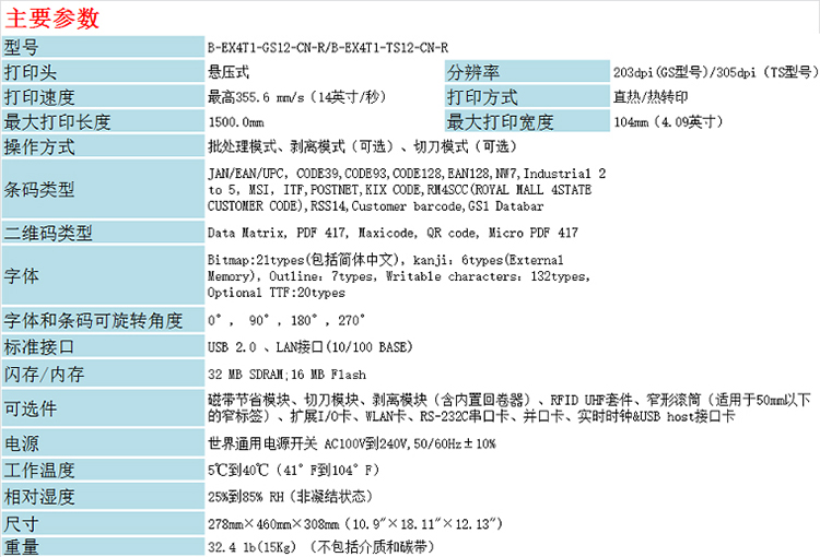 • 商品名称:东芝条码打印机 B-EX4T1-GS12-CN-R(单位:个)