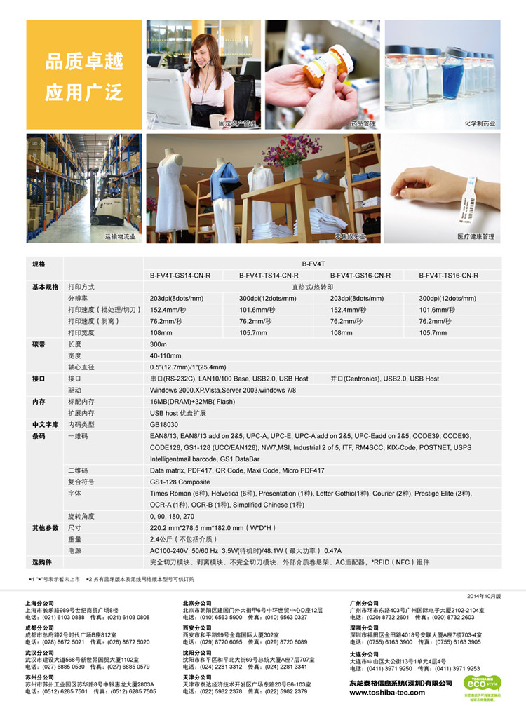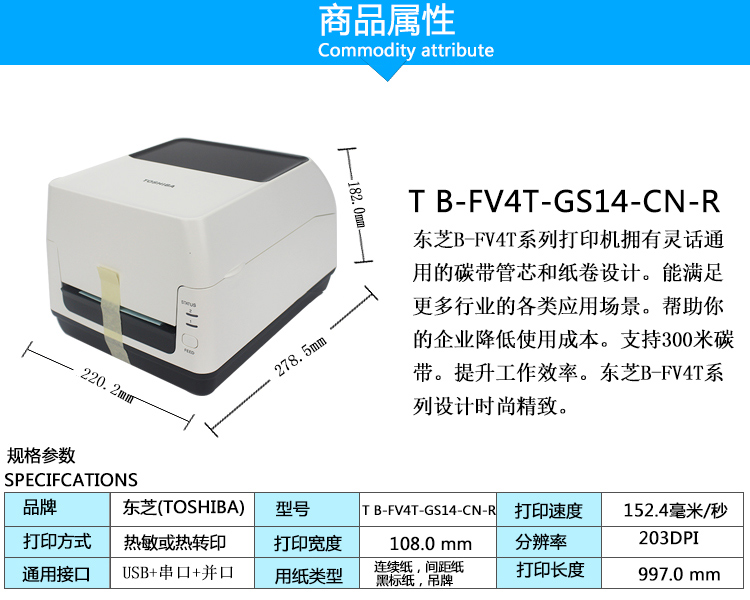 • 商品名称:东芝条码打印机 B-FV4T-GS14-CN-R(单位:个)