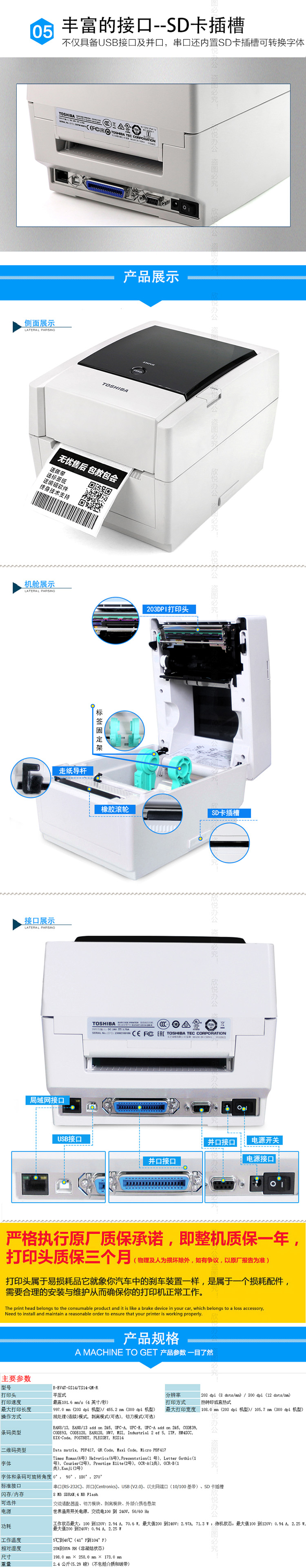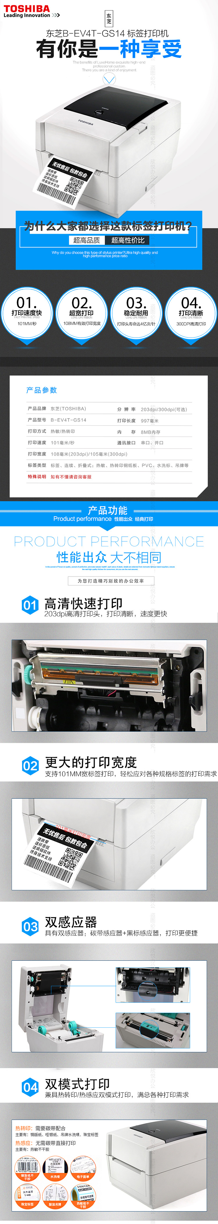 • 商品名称:东芝条码打印机 B-EV4T-TS14-QM-R(单位:个)