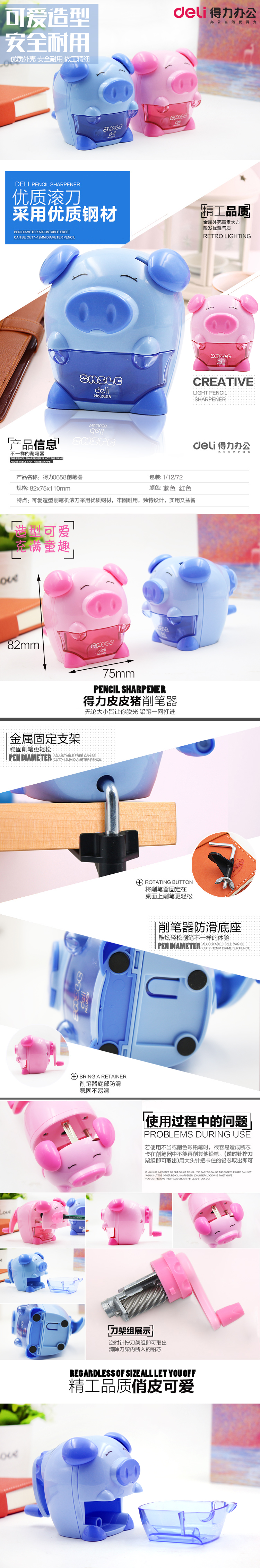 • 商品名称:得力 0658 皮皮猪削笔机 彩色(单位:只)