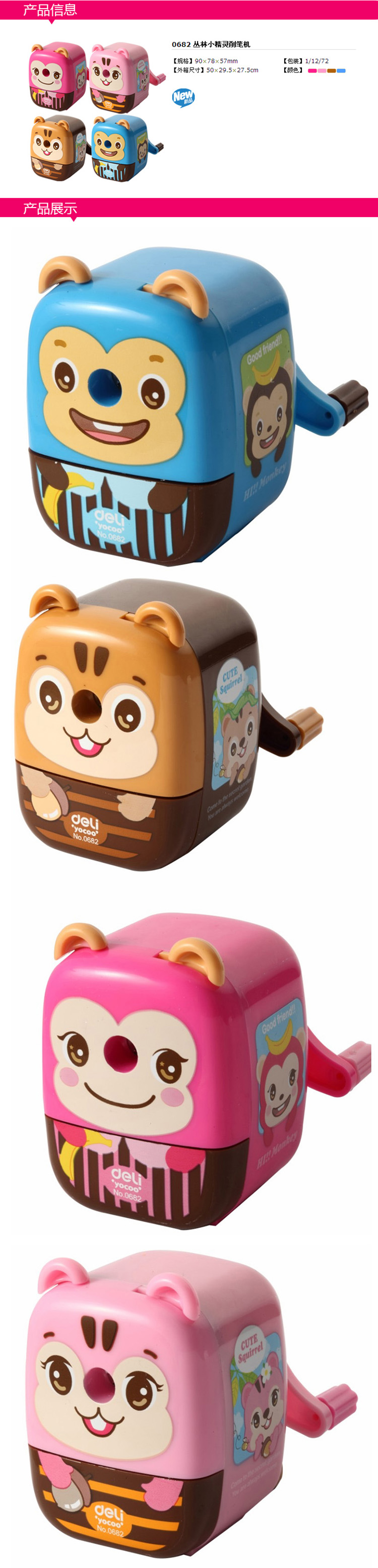 • 商品名称:得力 0682 丛林小精灵削笔机 彩色(单位:只)