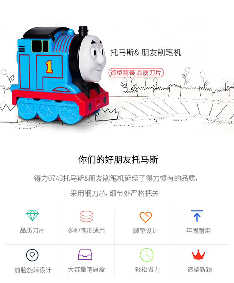 商品名称: 得力 0743 托马斯削笔机 蓝色(单位:盒)