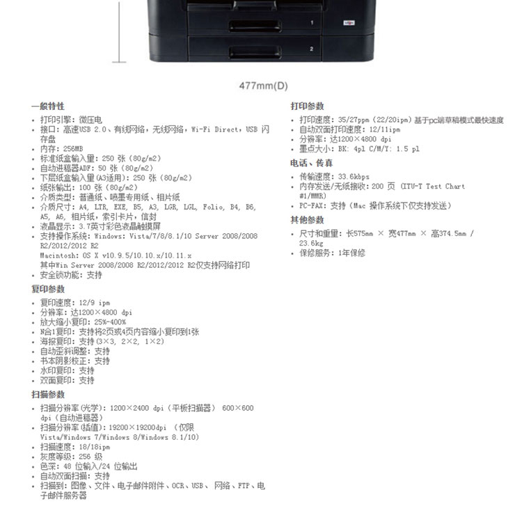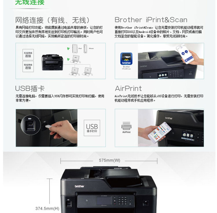 商品名称: 兄弟 MFC-J3930DW A3幅面 彩色喷墨多功能一体机