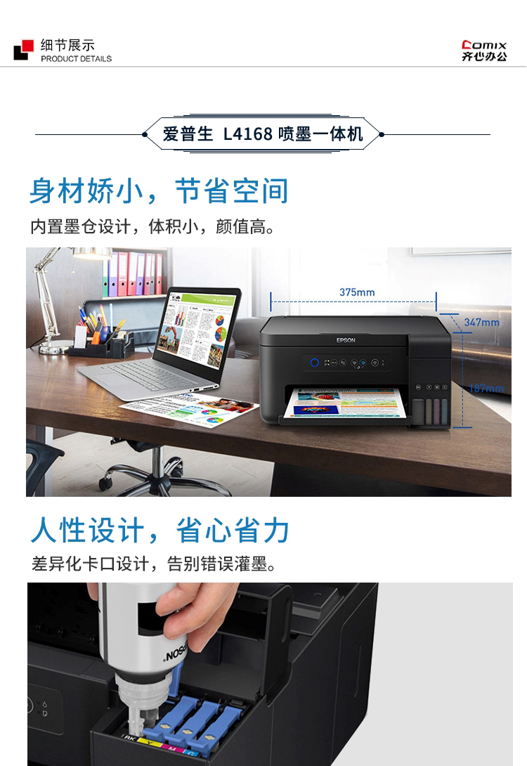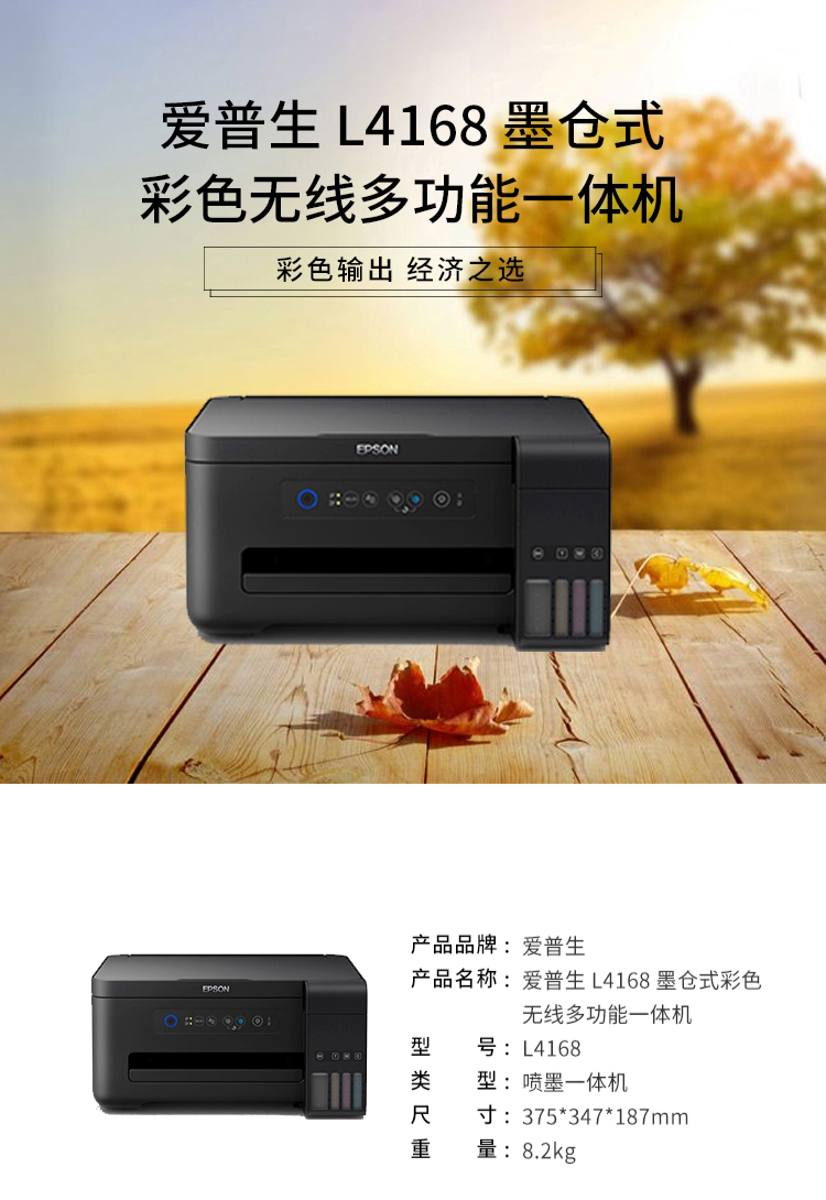 • 商品名称:爱普生 L4168 墨仓式彩色无线多功能一体机(单位:台)
