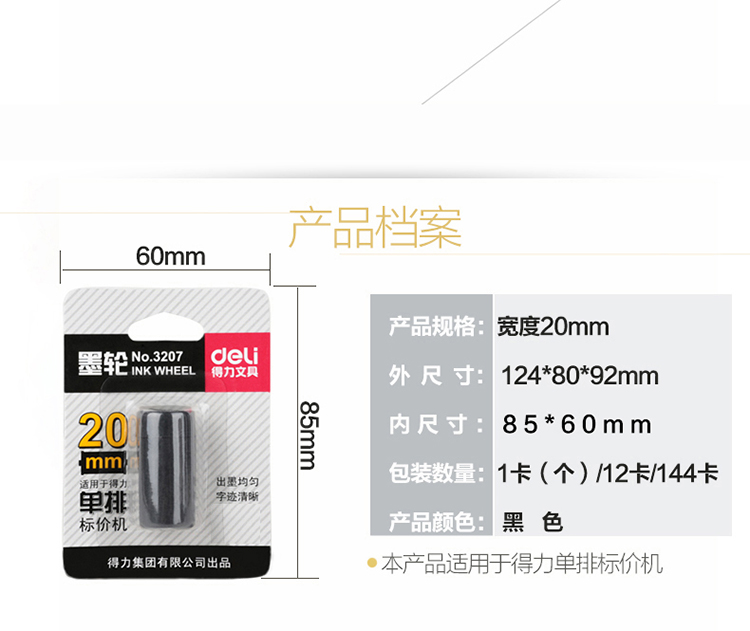 • 商品名称:得力 3207 商店商场打价机墨轮 黑色(单位:只)