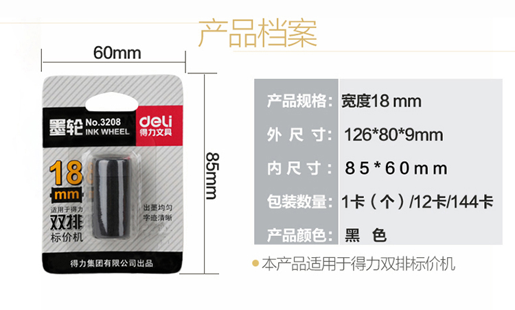 • 商品名称:得力 3208 商店商场打价机墨轮 黑色(单位:只)