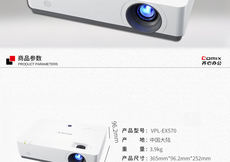 • 商品名称:索尼 VPL-EX570 办公 投影机 投影仪(XGA分辨率 4200流明 双H