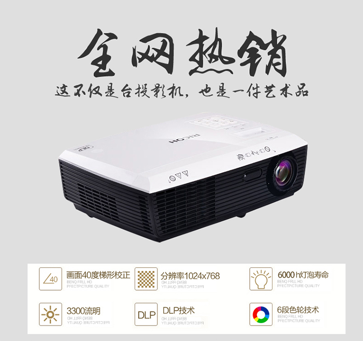• 商品名称:理光 PJ X2150 便携式商务投影机(100寸电动幕布/1.5M吊架安装调试/200米信号线/20M电源线/主机保修二年/灯泡半年)
