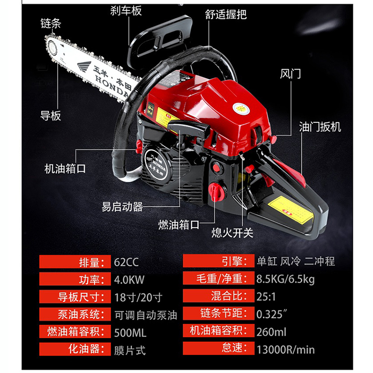 • 商品名称:本田 9980 4000W大功率油锯 黑/红色(单位:件)