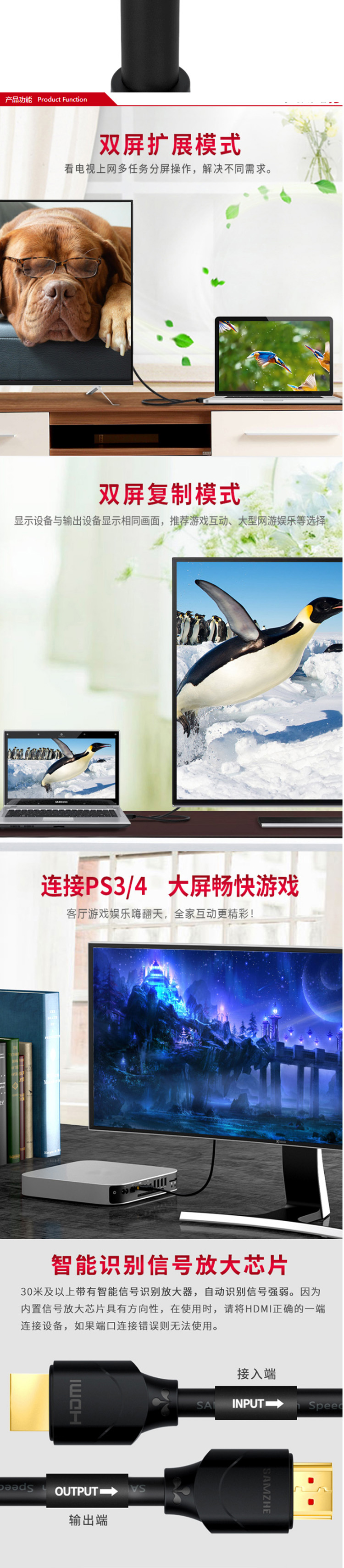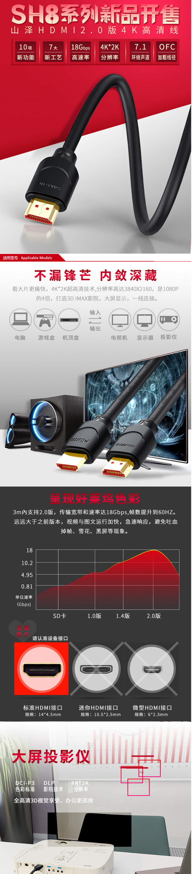 数码通讯  > 数码配件  > 网线/数据线  >  山泽/SAMZHE  >  山泽 50SH8 投影仪电脑电视机机顶盒连接线5M HDMI线(单位:条)