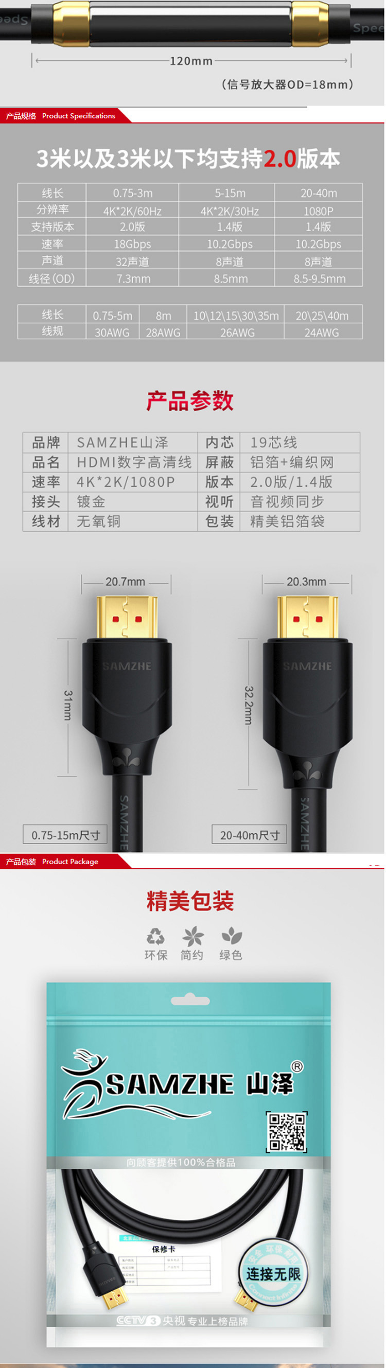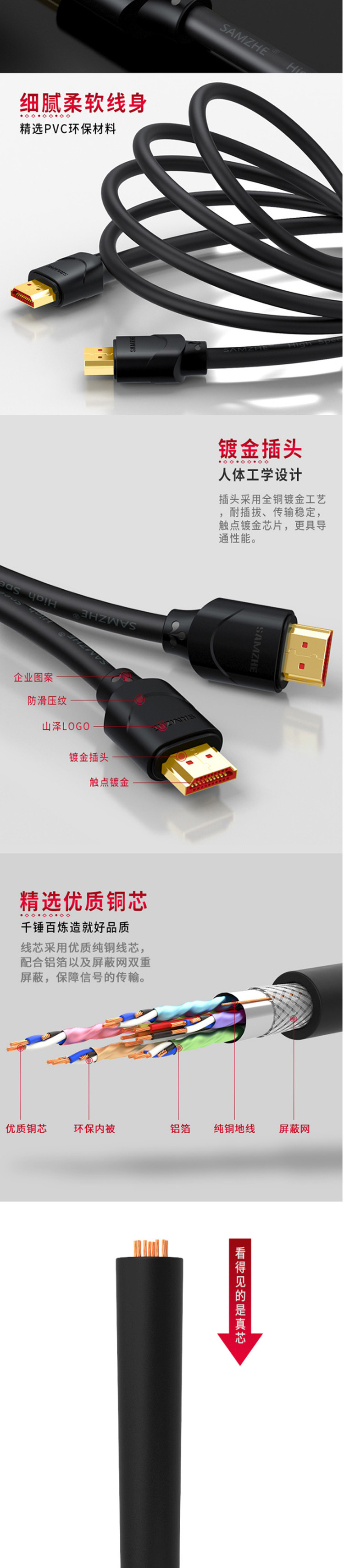 数码通讯  > 数码配件  > 网线/数据线  >  山泽/SAMZHE  >  山泽 100SH8 投影仪电脑电视机机顶盒连接线10M HDMI线(单位:条)