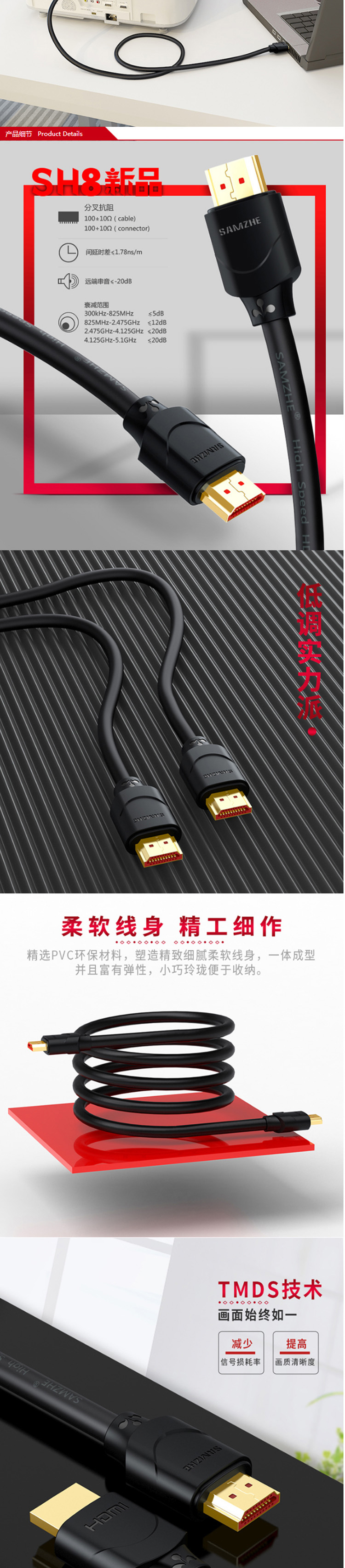 数码通讯  > 数码配件  > 网线/数据线  >  山泽/SAMZHE  >  山泽 300SH8 投影仪电脑电视机机顶盒连接线30M HDMI线(单位:条)