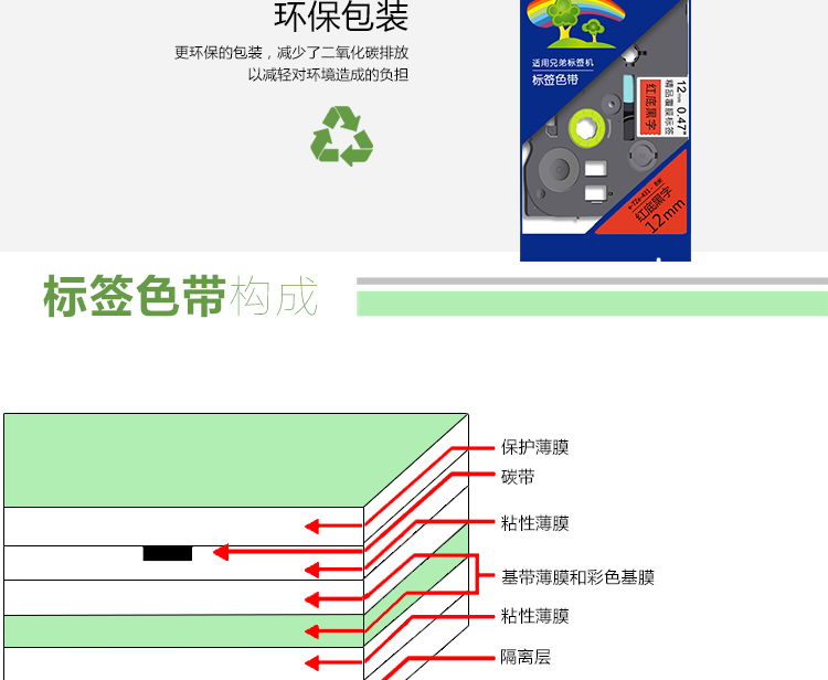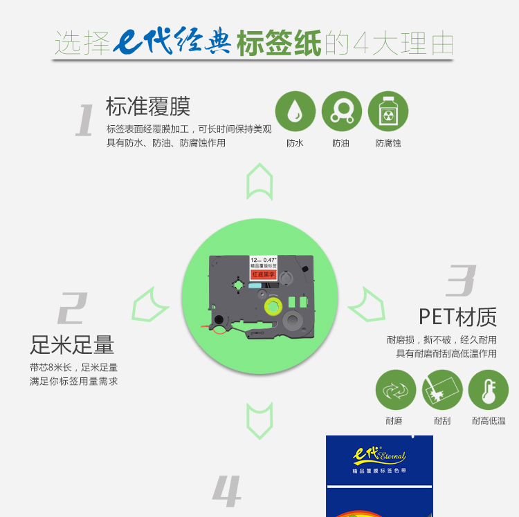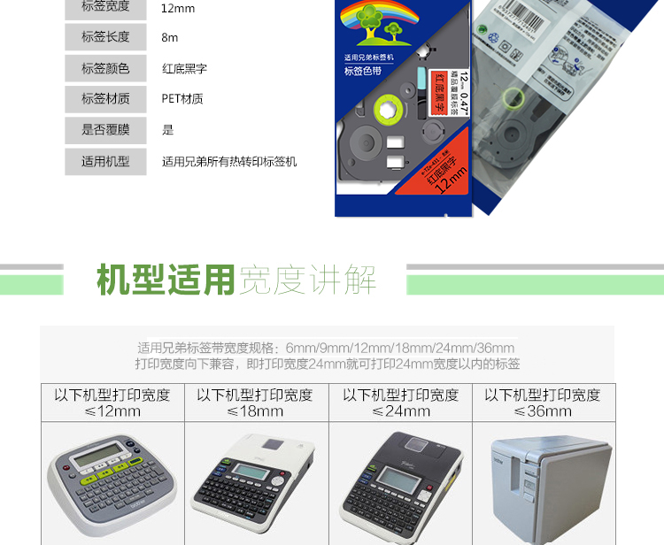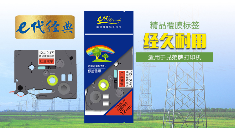 • 商品名称:e代经典 e-TZe代经典 e-431标签机色带(计价单位:个) 适用兄弟标签机色带 12mm红底黑字 TZe-431
