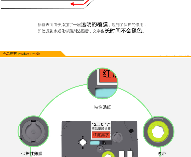 商品名称: e代经典 e-TZe代经典 e-431标签机色带(计价单位:个) 适用兄弟标签机色带 12mm红底黑字 TZe-431