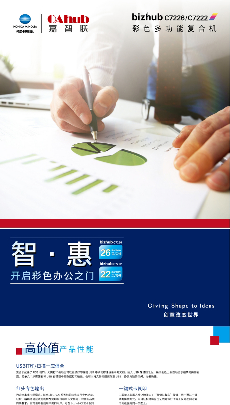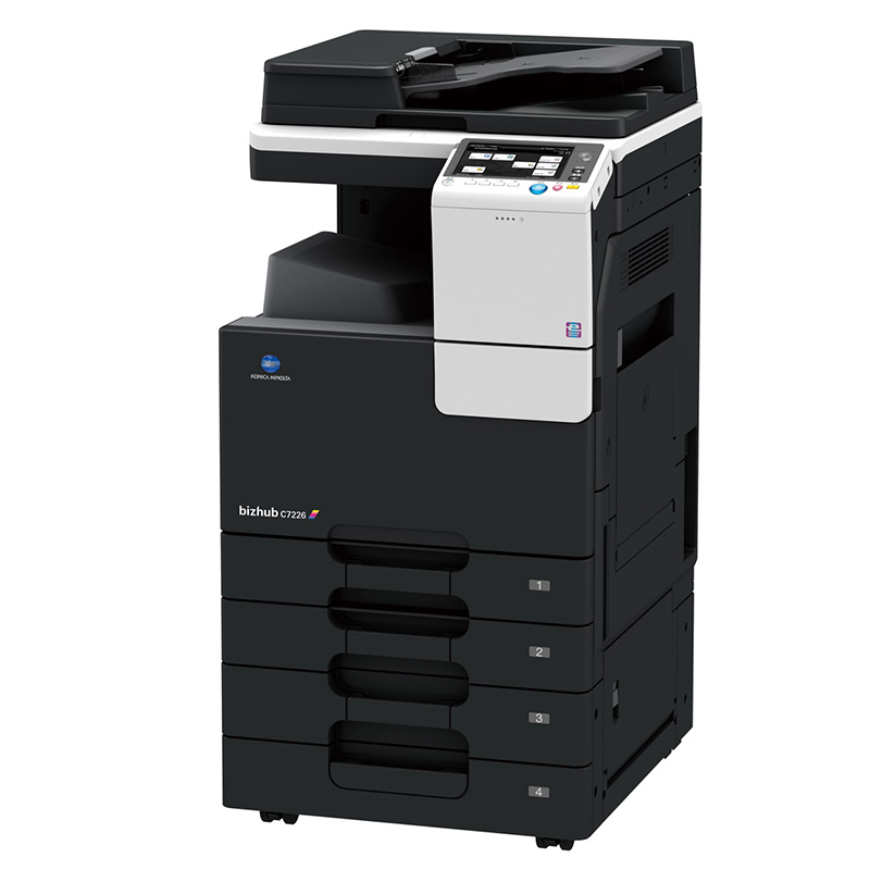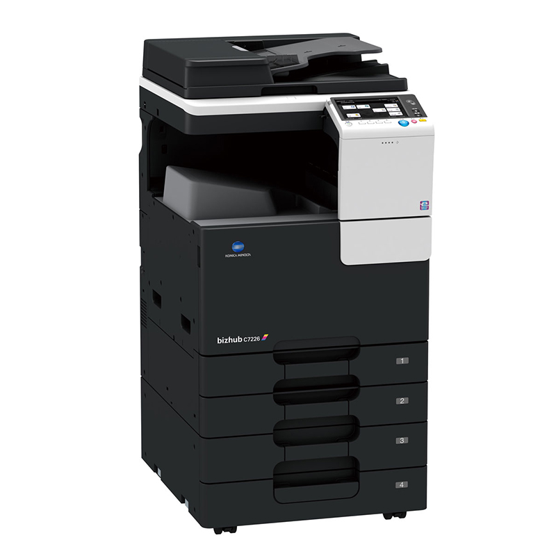 商品名称: 柯尼卡美能达 bizhub C7226 A3彩色多功能复合机 (C7226主机+双纸盒+双面自动输稿器+双面+网络+原装工作底柜(落地))(单位:台)