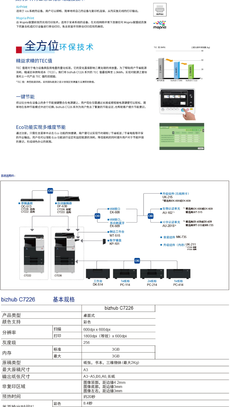 办公设备  > 打印/复印设备  > 复合机/一体机  >  柯尼卡美能达/KONICA MINOLTA  >  柯尼卡美能达 bizhub C7226 A3彩色多功能复合机 (C7226主机+双纸盒+双面自动输稿器+双面+网络+原装工作底柜(落地))(单位:台)