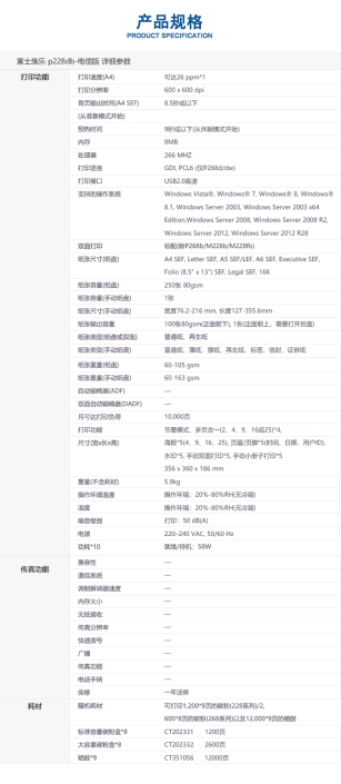 • 商品名称:富士施乐 FUJIXEROX XEROX P228DB 自动双面打印/黑白激光 激光打印机