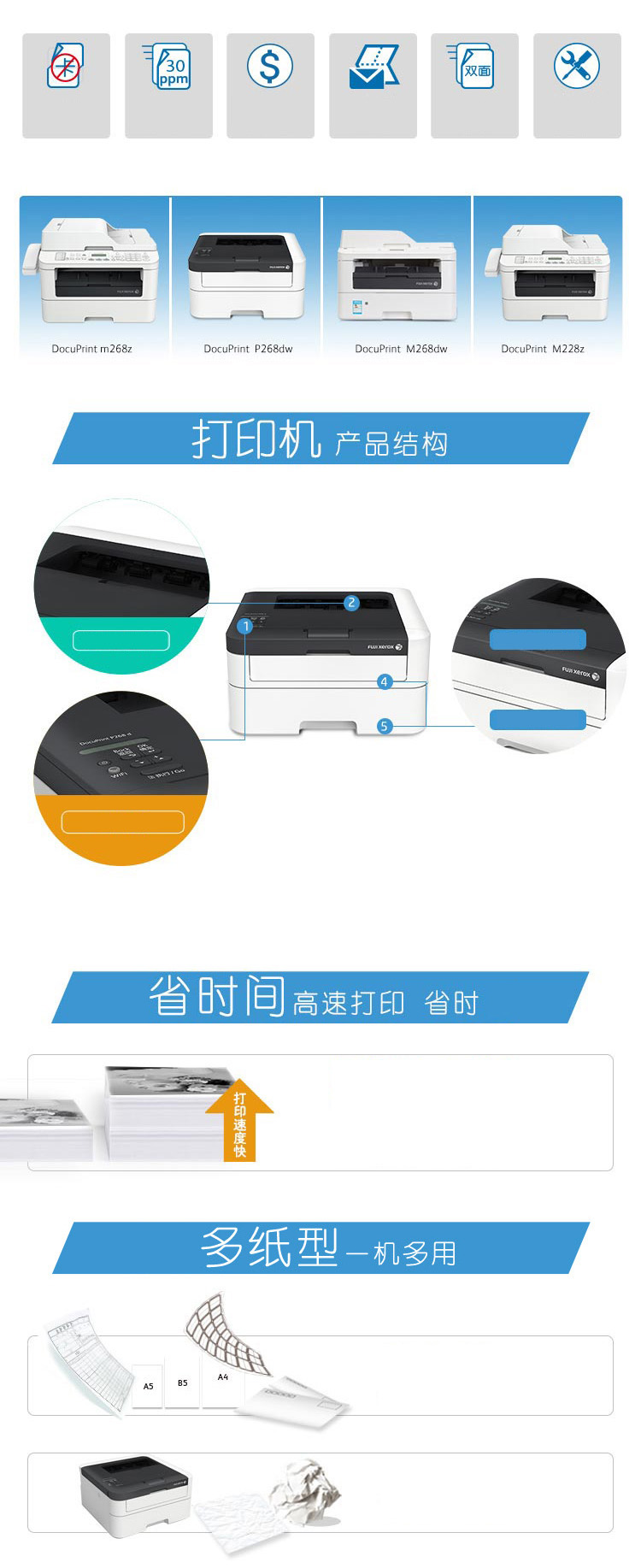 商品名称: 富士施乐 FUJIXEROX DOCUPRINT P268D(自动双面打印/黑白激光)激光打印机