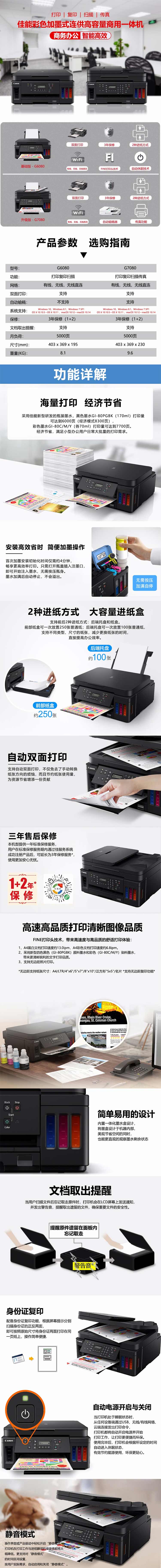 商品名称: 佳能 CANON G7080(有线/无线网络打印/自动/黑白/1年)激光打印机