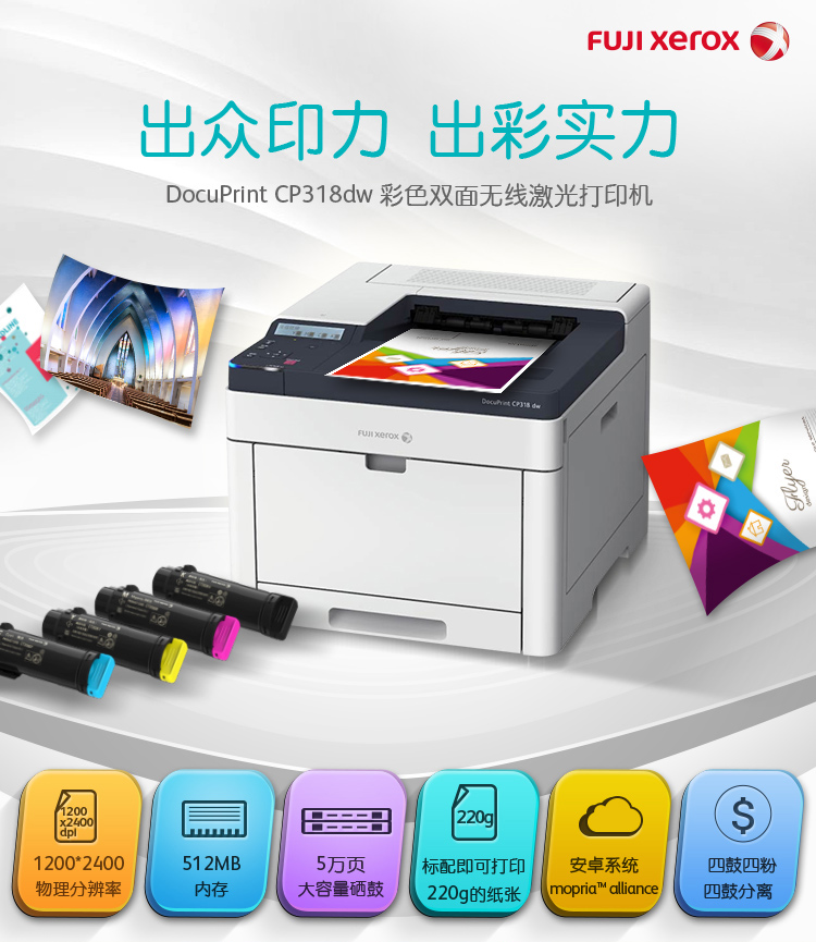 办公设备  > 打印/复印设备  > 激光打印机  >  富士施乐/Fuji Xerox  >  富士施乐 FUJIXEROX DOCUPRINT CP318DW(无线/有线网络打印/彩色)激光打印机