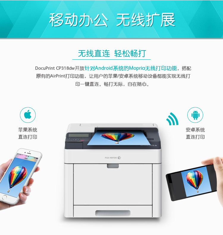 • 商品名称:富士施乐 FUJIXEROX DOCUPRINT CP318DW(无线/有线网络打印/彩色)激光打印机