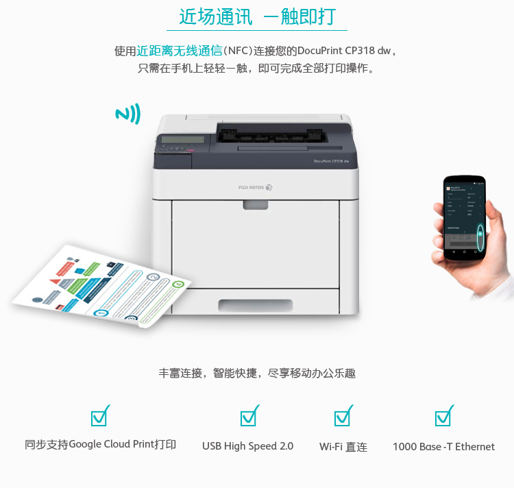 富士施乐 FUJIXEROX DOCUPRINT CP318DW(无线/有线网络打印/彩色)激光打印机