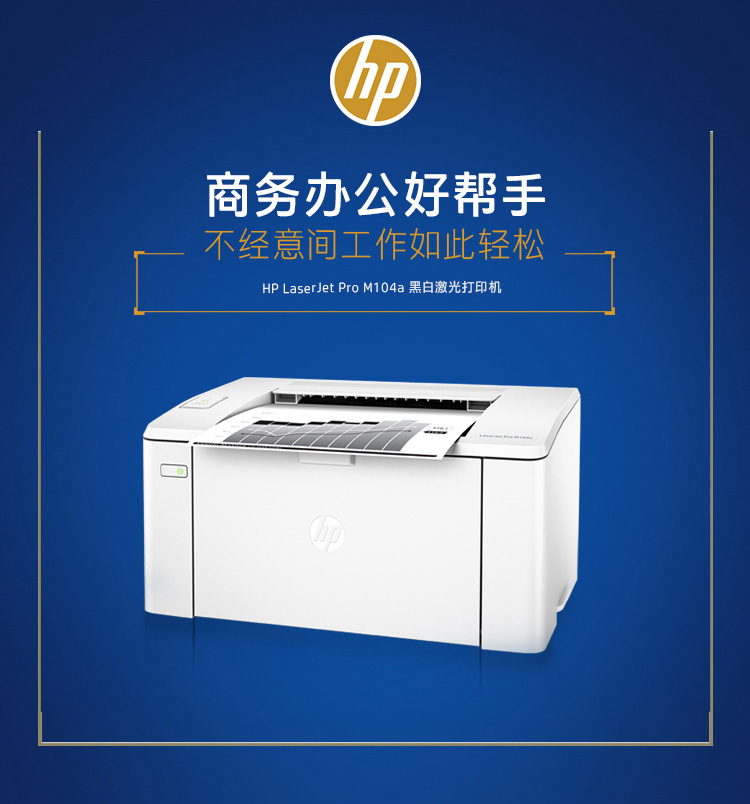 • 商品名称:惠普 HP LASERJET PRO M104A(有线网络打印/黑白)激光打印机