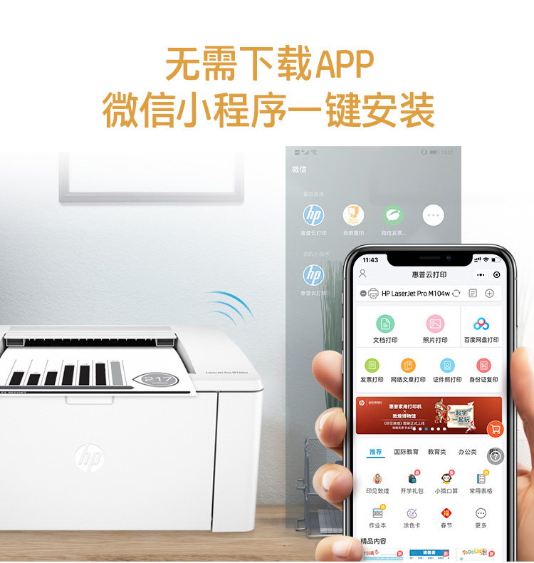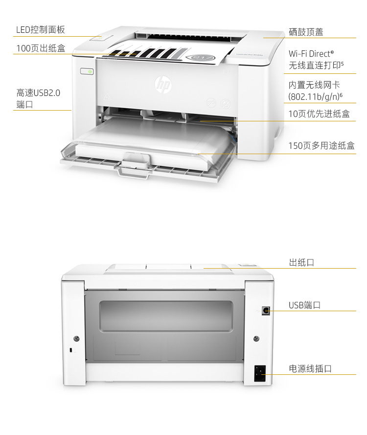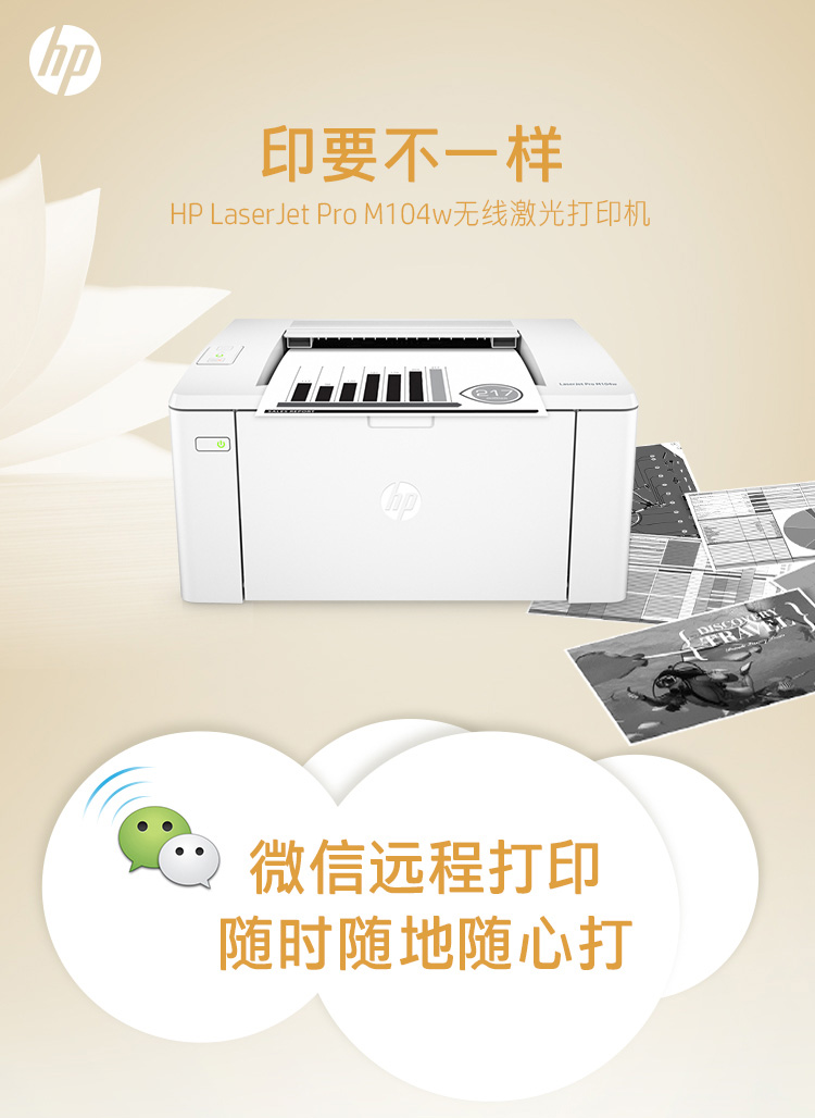 • 商品名称:惠普 HP LASERJET PRO M104W(有线网络打印/黑白)激光打印机