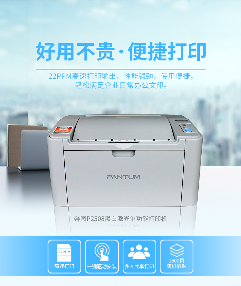 • 商品名称:奔图 PANTUM P2508(手动双面打印/黑白)激光打印机