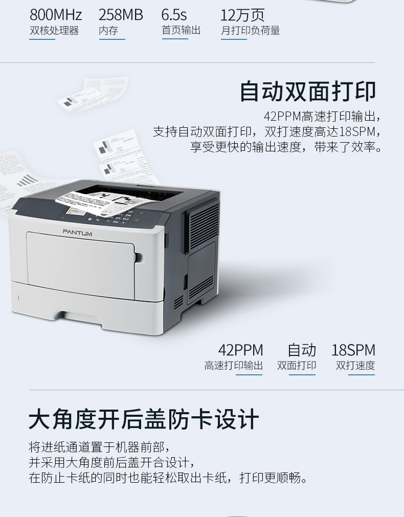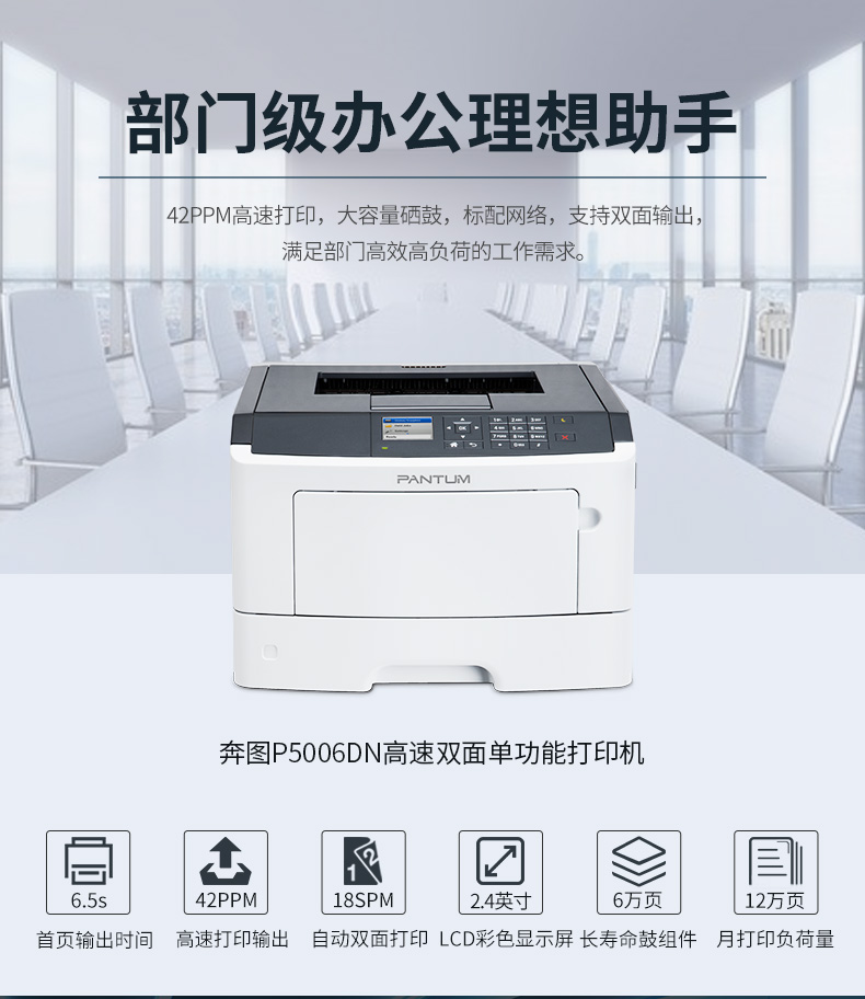 • 商品名称:奔图 PANTUM P5006DN(自动双面打印/黑白)激光打印机