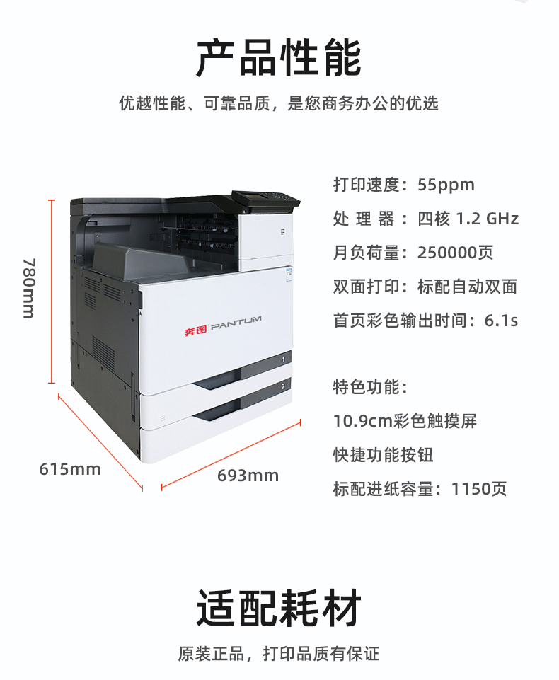 • 商品名称:奔图 PANTUM CP9502DN (有线网络打印/自动双面打印/彩色) 激光打印机