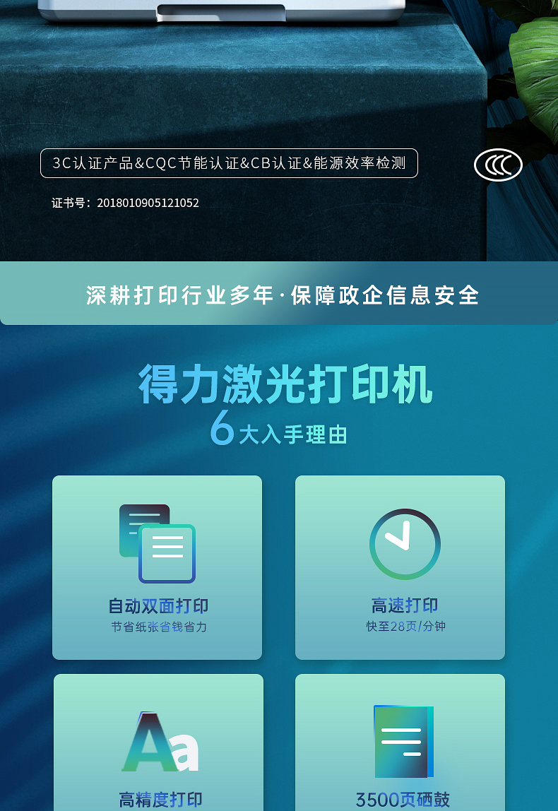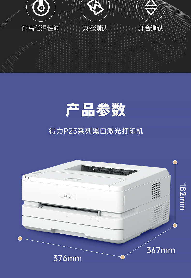 • 商品名称:得力 DELI P2500D(有线/无线网络打印/自动/黑白/1年)激光打印机