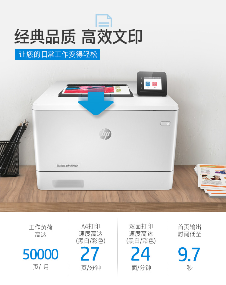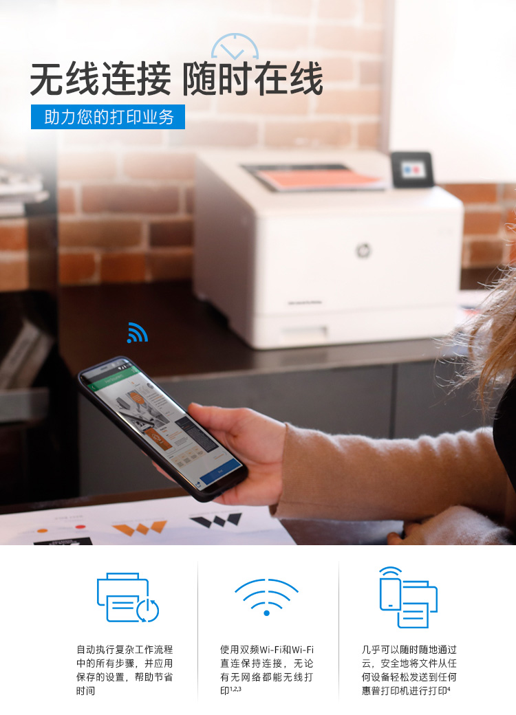 商品名称: 惠普 HP M454DW(有线/无线网络打印/自动双面打印/彩色/1年)激光打印机