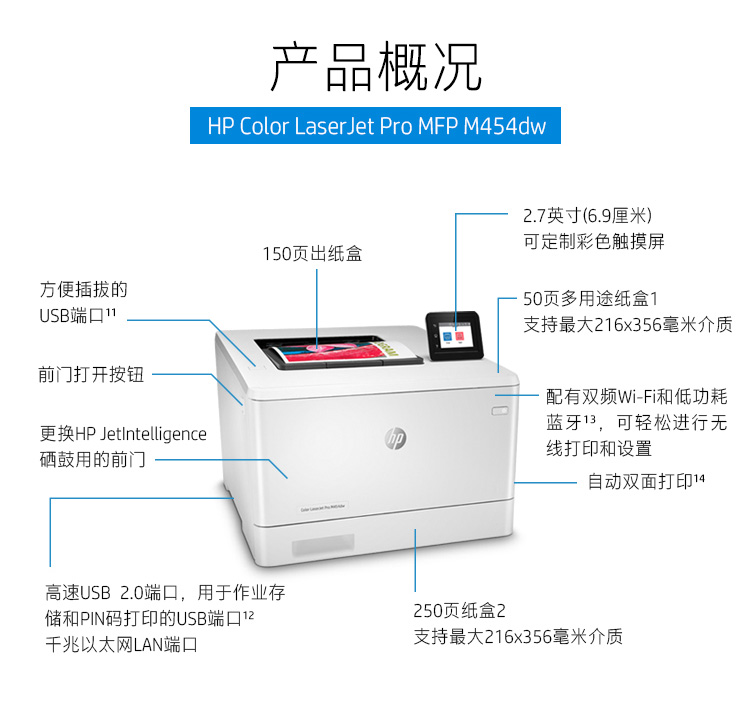 • 商品名称:惠普 HP M454DW(有线/无线网络打印/自动双面打印/彩色/1年)激光打印机