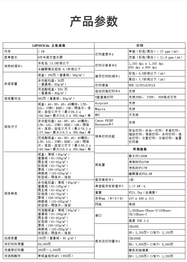 • 商品名称:佳能 CANON IMAGECLASS LBP663CDN(有线网络打印/自动双面打印/彩色)激光打印机