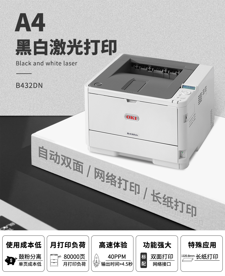 办公设备  > 打印/复印设备  > 激光打印机  >  OKI  >  OKI B432DN(有线网络打印/自动双面打印/黑白)激光打印机