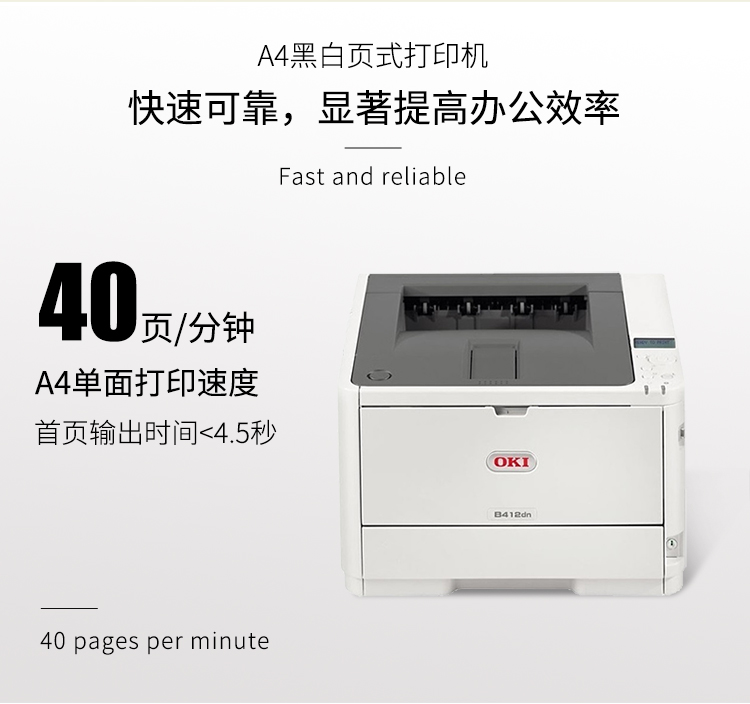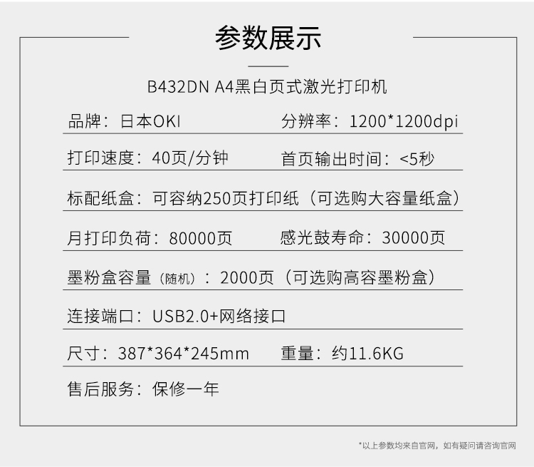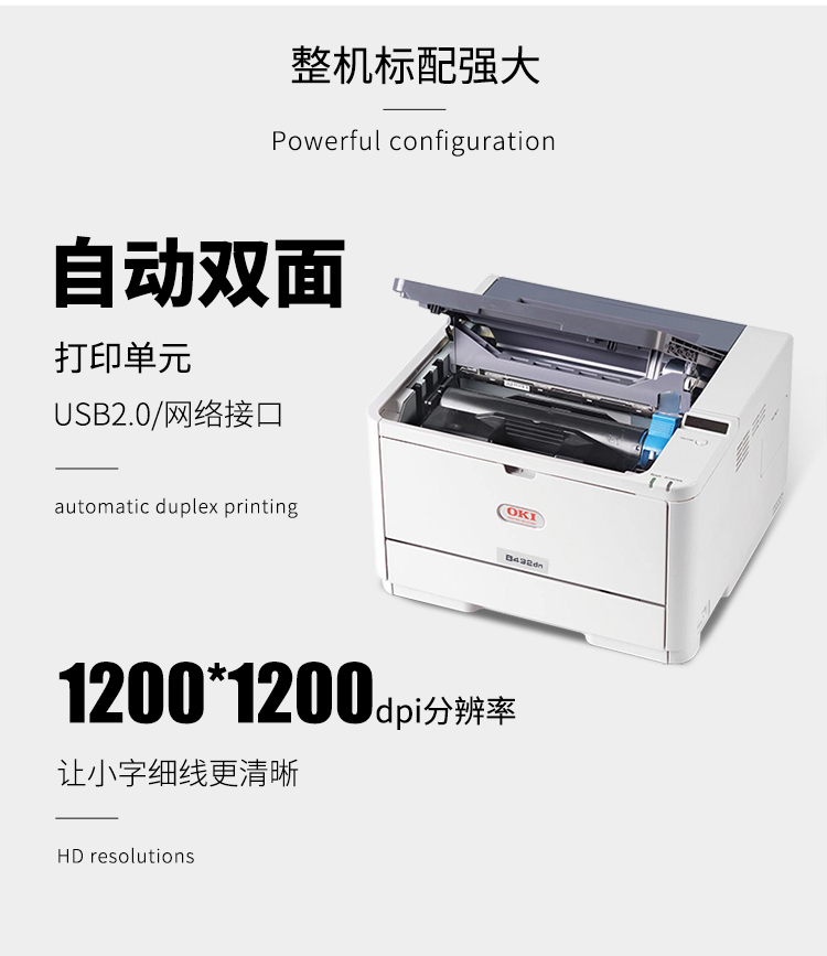 商品名称: OKI B432DN(有线网络打印/自动双面打印/黑白)激光打印机