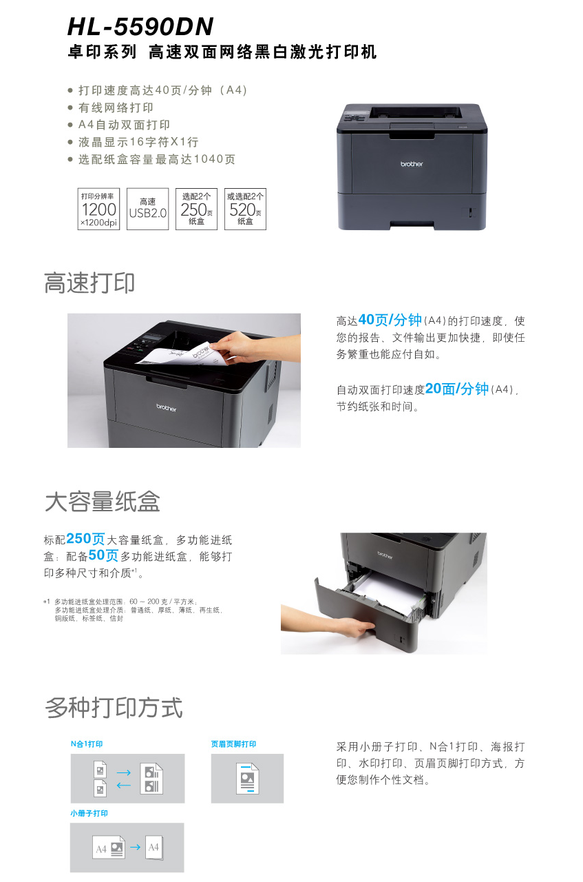 办公设备  > 打印/复印设备  > 激光打印机  >  兄弟/brother  >  兄弟 BROTHER HL-5590DN(有线网络打印/黑白激光)激光打印机