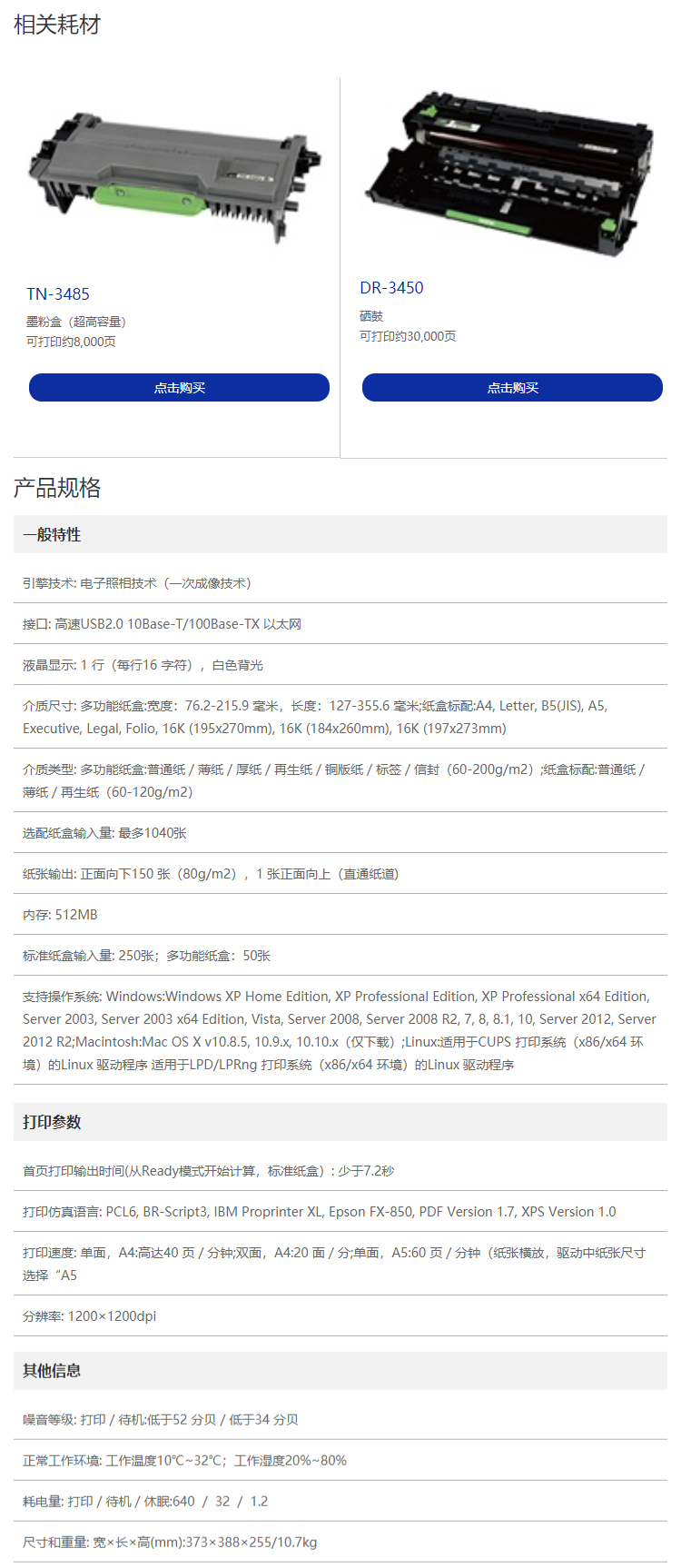 • 商品名称:兄弟 BROTHER HL-5590DN(有线网络打印/黑白激光)激光打印机