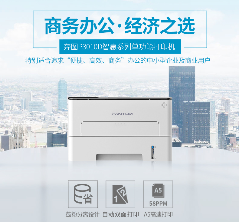 • 商品名称:奔图 PANTUM P3010D(自动双面打印/黑白)激光打印机
